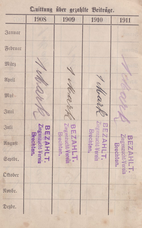 Brechten - Mitgliedsbeiträge für den Ziegenzucht-Verein