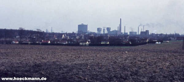 Zeche Minister Stein in den frühen 1970er Jahren - im Vordergrund die Kleingartenanlage Holthauser Heide